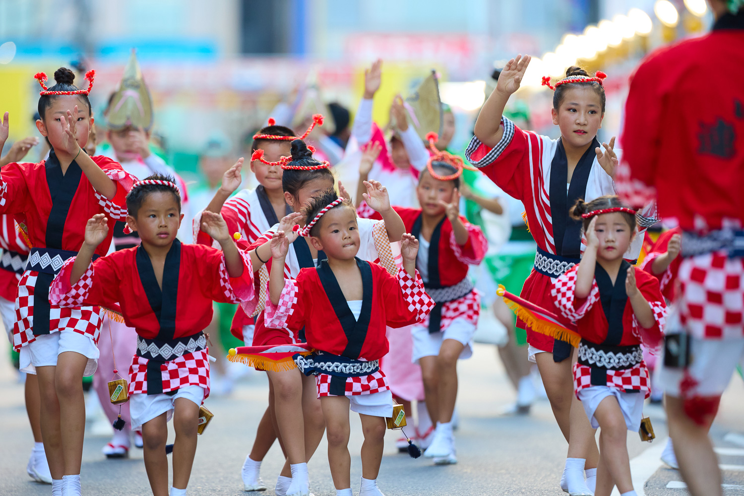 受け継がれてきた踊り子魂に、次の世代の子どもたちが新たに加わり、ますます活気に満ちた連へと成長を続けています。「明るく楽しく生き生きと」をモットーに、笑顔あふれる踊りをお届けします。