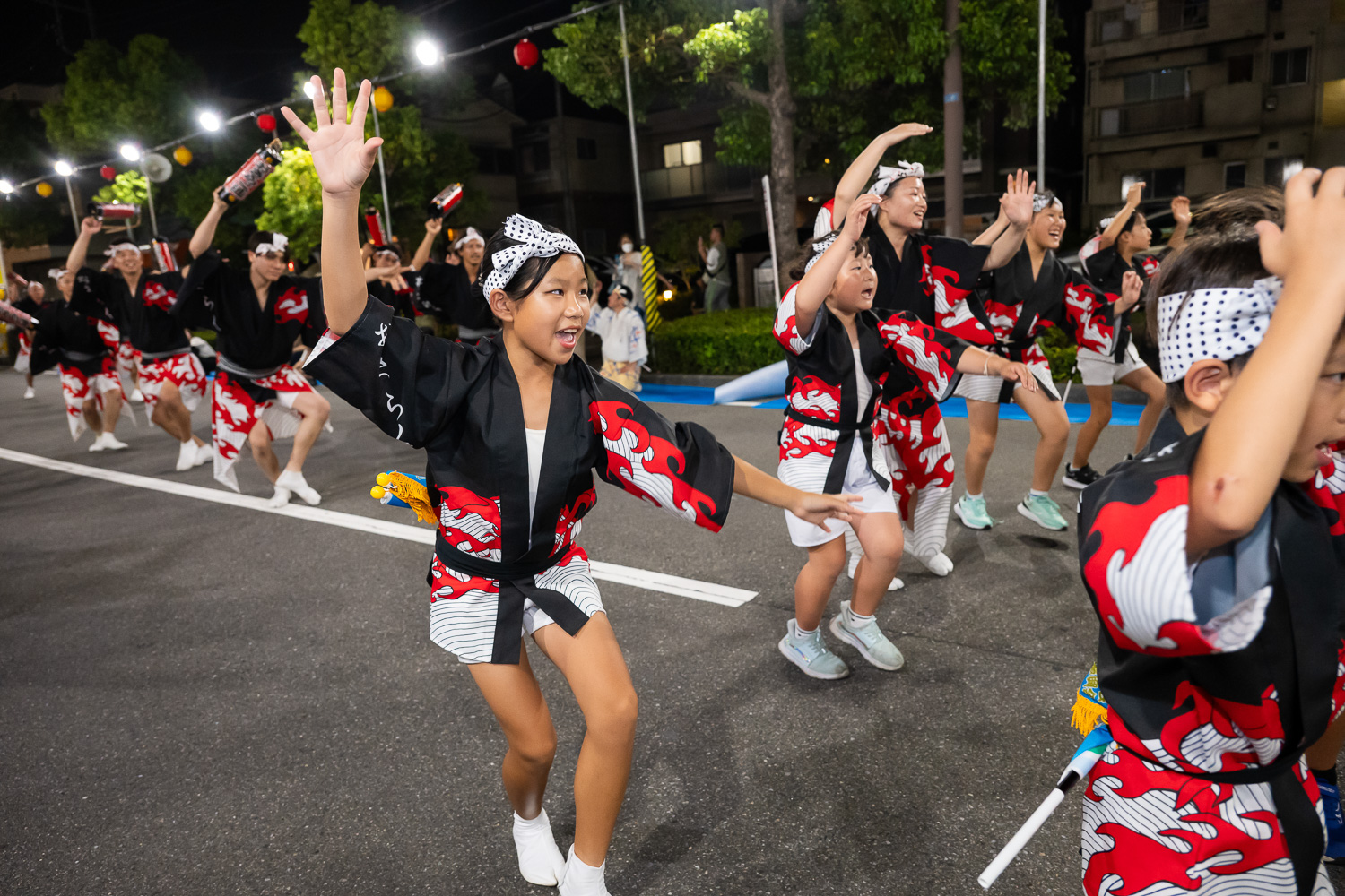 踊りはじめて数年の子達の成長。今年は久しぶりに阿波踊りに戻ってきた新メンバーも多く増え、楽しく取り組んでいます。