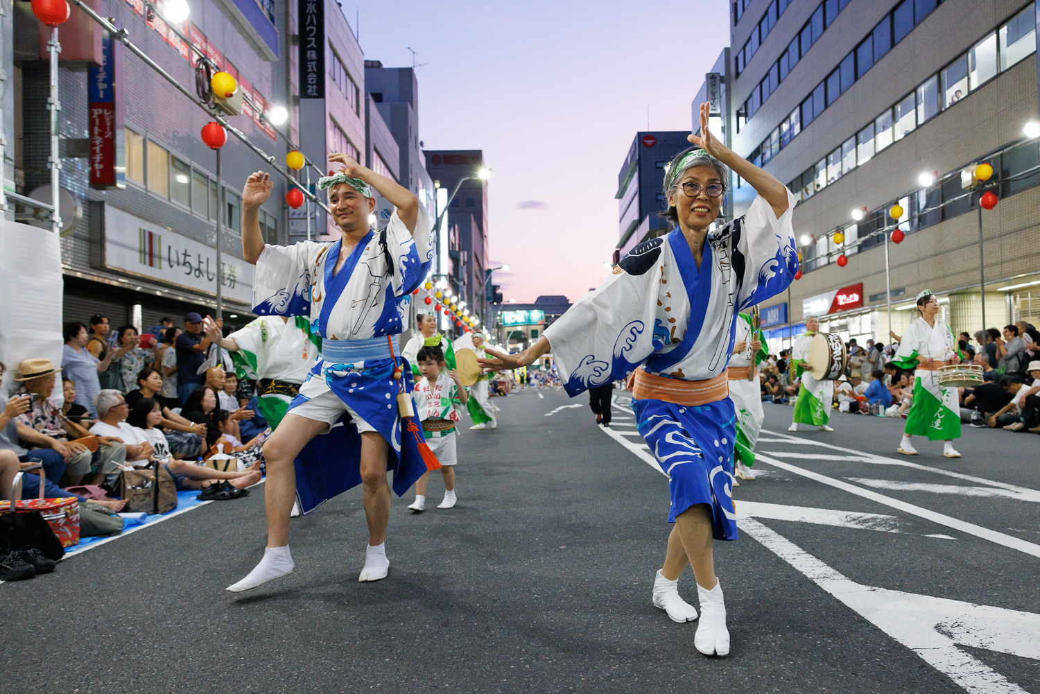 太鼓の響きを身体で感じてリズムをとり、得意のアイコンタクトでタイミングを合わせます。「や」の指文字を左手で表現し、高々と揚げて「ヤットサー」の掛け手話(声)で聴覚障害者と聴者が一体となって楽しく踊ります。