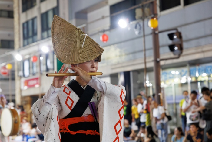 みなさんこんばんは!ふじみ野市より参加しております、ききょう連です。私たちは正調阿波踊りを基本とし、「明るく・楽しく・元気よく」をモットーに活動しています。この素晴らしいお祭りに参加できること、そしてたくさんの皆様とお会いできるこの機会を、心から楽しみにしてまいりました。