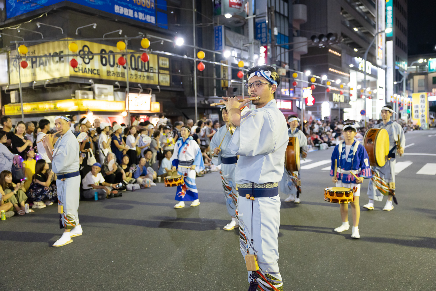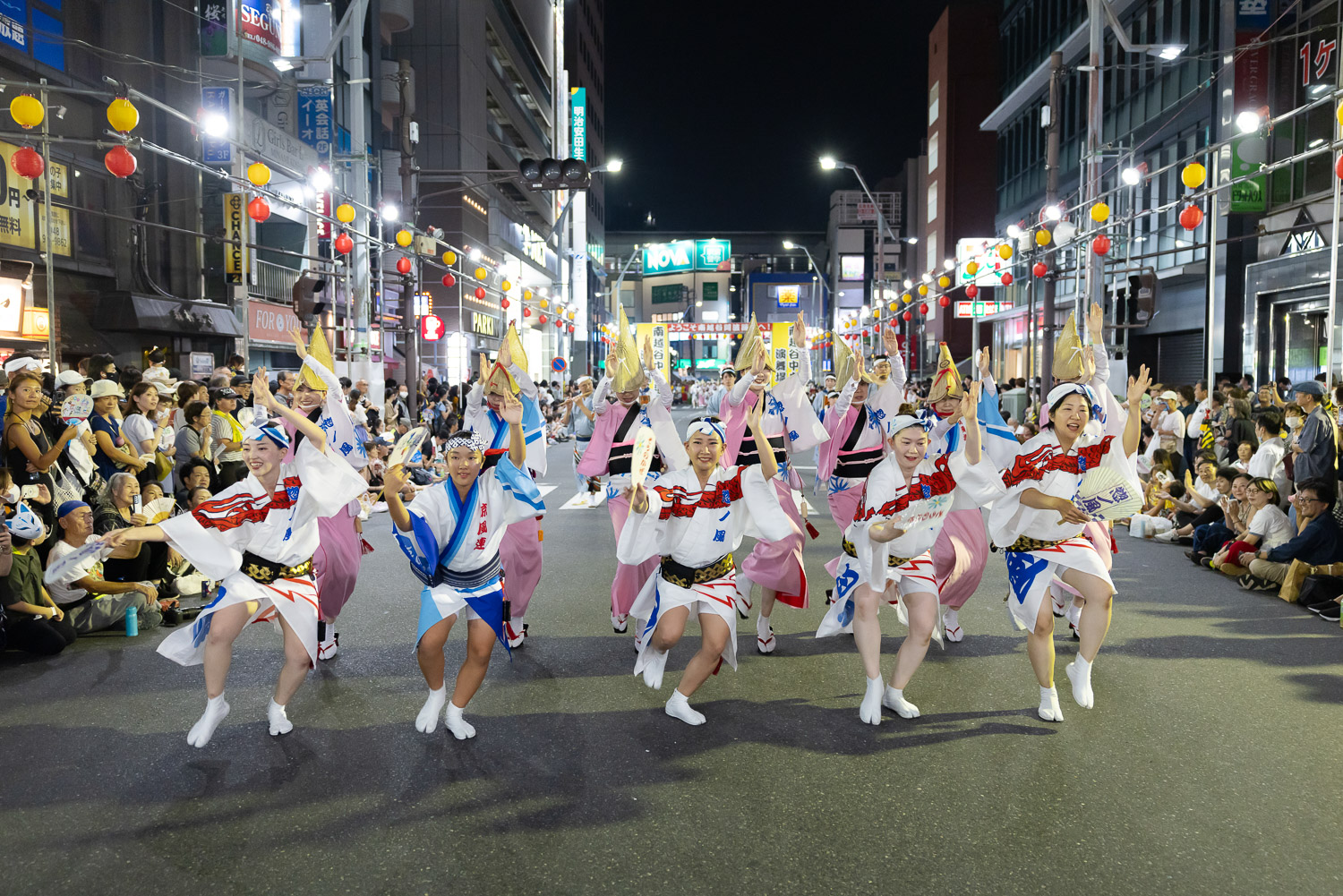 今年、南越谷に初参加させていただきます。皆様の演舞に学び、阿波踊りの楽しさを真っ直ぐお伝えできるよう頑張ります。創立以来、合同出演を重ねてきた惣ノ風連とのコラボレーションをお楽しみください。