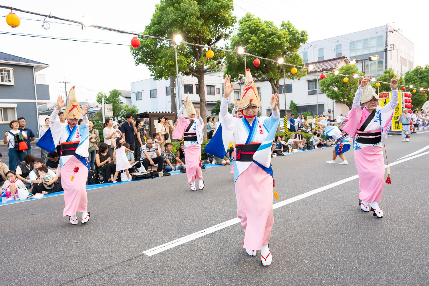 当連では、踊りも鳴り物も基本を大切にしています。また、心も体も浮き立つような楽しい阿波踊りを心がけています。年配の方から小さなお子様まで大歓迎です。皆様の参加を心よりお待ちしています。