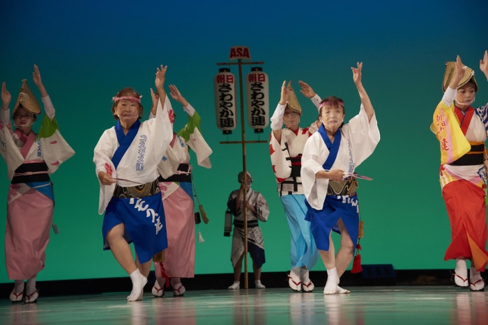 コスモス連、八潮飛潮連、幸手さくら連、イハシ連、朝日さわやか連の5連による合同連です。短い期間ではありますが合同練習をおこない交流を深めてきました。2年間の自粛期間を経て、待ちに待った南越谷阿波踊り。それぞれの衣装は異なりますが、心をひとつに、精一杯踊ります。