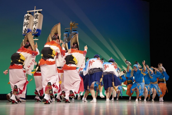 今、静止の時過ぎ奏でるぞめきの音が響き渡り、新しき時を刻み始めます。私達、維新連は維新志士達の意気を、翔鳳連は天空を翔ける鳳凰を、共に阿波踊りでつづりコラボで織りなすオリジナルパフォーマンスが阿波模様を染め、皆様にご覧いただければ幸いです。
