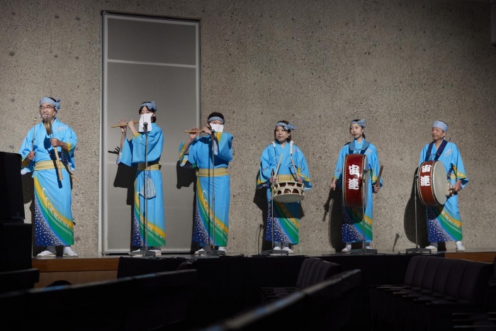 私たち、おおぞら「宙」連は南越谷一丁目自治会の協力のもと地域の皆様相互の親睦を深めることを目的に発足しました。コロナ禍により、参加メンバーは今までで一番少ない人数ではありますが、限られた場所と時間を有効に練習に励んでまいりました。今日、この舞台に立たせていただけることに感謝し元気いっぱいに楽しみたいと思います。来年度、おおぞら「宙」連は創立20年を迎えます。思い切り外で踊りたい!!観客の皆様と阿波踊りを通して心通い合わせられるような踊りを心がけてまいります。踊り、鳴り物ともに新メンバー募集中です。
