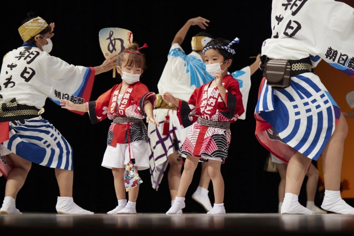 コスモス連、八潮飛潮連、幸手さくら連、イハシ連、朝日さわやか連の5連による合同連です。短い期間ではありますが合同練習をおこない交流を深めてきました。2年間の自粛期間を経て、待ちに待った南越谷阿波踊り。それぞれの衣装は異なりますが、心をひとつに、精一杯踊ります。