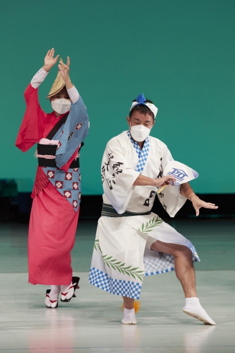 取らないことで見ているお客様と踊り手が一体になって楽しめるのが「のんき調」の踊りの特徴です。