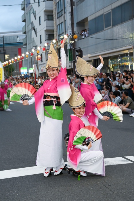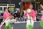 東京都練馬区を拠点として活動しており、今年創立34年目の女華夢連です。人数は少なく小さな連ですが、熱い思いで活動しています。和太鼓の寄せ太鼓のリズムも取り入れ、女華夢連の特徴を出しています。皆様にもぜひ女華夢連の鳴り物に心踊らせて頂き、一緒にお祭りを楽しんで下さい。